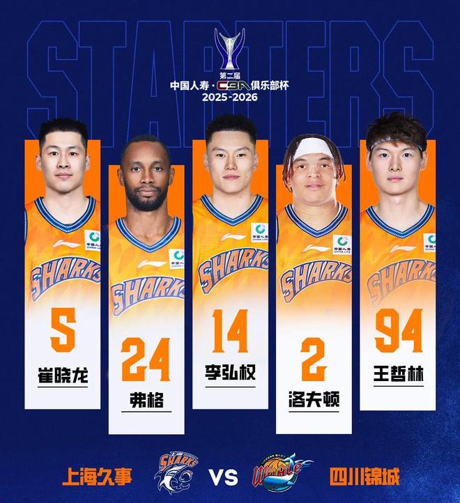 本赛季的首场比赛,上海久事男篮派出了由崔晓龙、弗格、李弘权、洛夫顿、王哲林组成的首发阵容。
