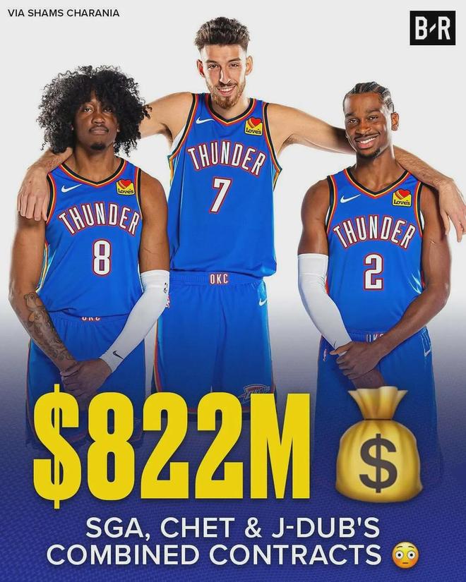 要说当今联盟谁能阻挡雷霆的突进?可能只有他们自己,今夏休赛期花费8.22亿美元续约了亚历山大+切特+杰威,将来或许会因薪资压力过大解散三巨头。