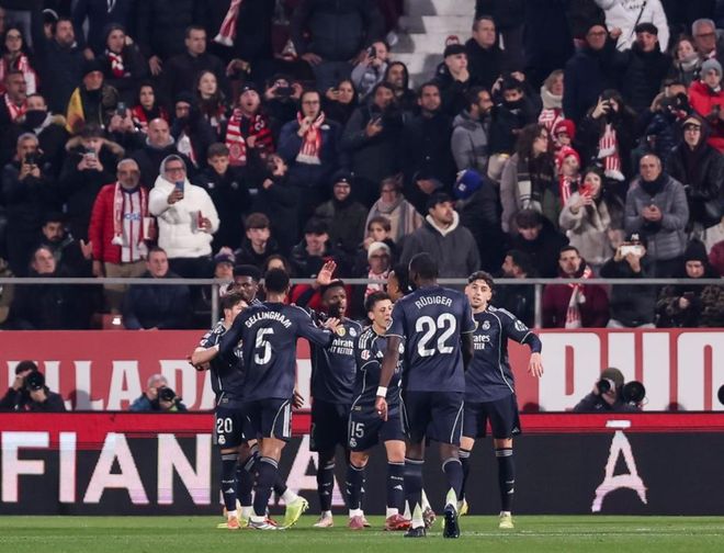 第66分钟,皇马获得点球机会。姆巴佩主罚,低射球门左下角。虽然门将判断对了方向,但皮球依然钻入球门。皇马扳平比分!第72分钟,皇马进行换人调整,罗德里戈替补上场,换下楚阿梅尼。第80分钟,维尼修斯在禁区左侧兜射远角,踢高了。最终,皇马1-1赫罗纳。皇马联赛遭遇3场不胜,3场狂丢6分,无缘登顶,落后巴萨1分排名第2。